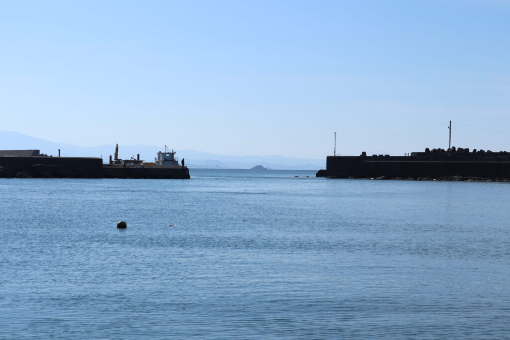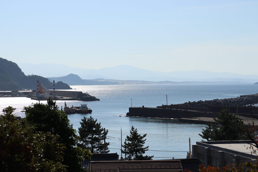 前回の撮影から約2週間。海と夕陽に飢えていたが、11月初めの三連休は雨予報。そこで平日オフにしてバスで向かったのは、前回行けなかった網代漁港。鳥取駅から鳥取砂丘の手前を右折して1時間弱。出迎えてくれたのは何処までも青い空と海。