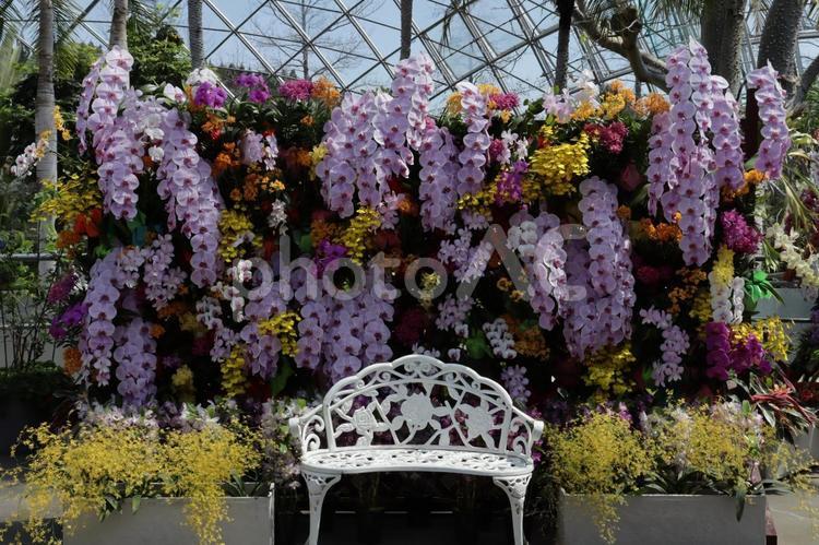 胡蝶蘭の前で一休み