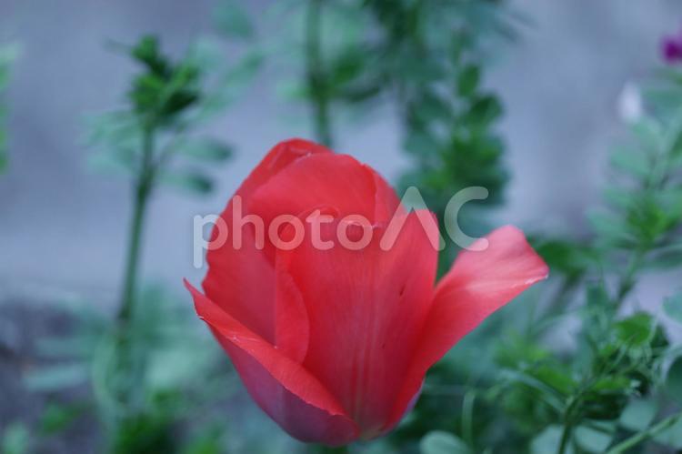 赤が鮮やかなチューリップ