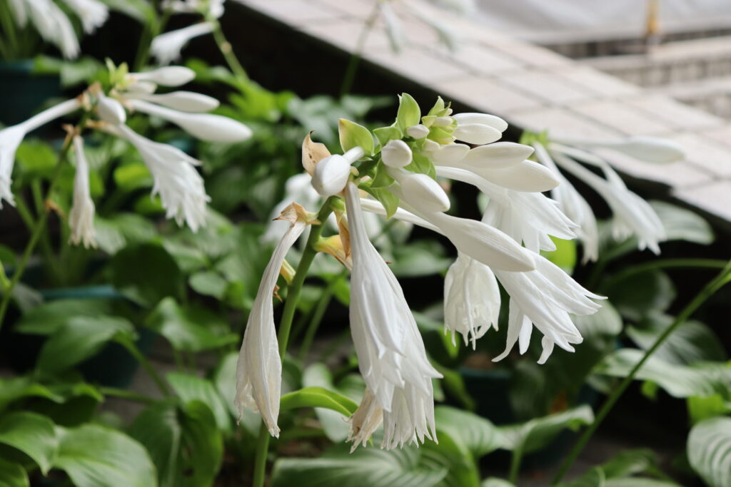 商店街を通り抜けてあやめ池公園まで足を延ばす。土曜日なのに人影はなく、白いタマノカンザシだけが広い公園のあちこちに咲いていた。既に午後4時を過ぎていたので、東郷池沿いに燕趙園を目指して歩く。