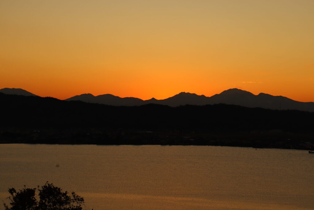 ただ、これが秋と冬の夕陽の違いなのか、期待した真っ赤な夕景にはならない。しかし、完全に山の向こうへ沈んでからの色変わりを期待して最後まで粘る。観光客も消えてたった一人で、寒さに震えながら最後の一枚で少し納得の写真が撮れた。