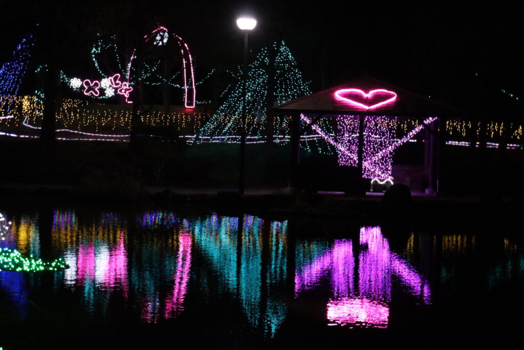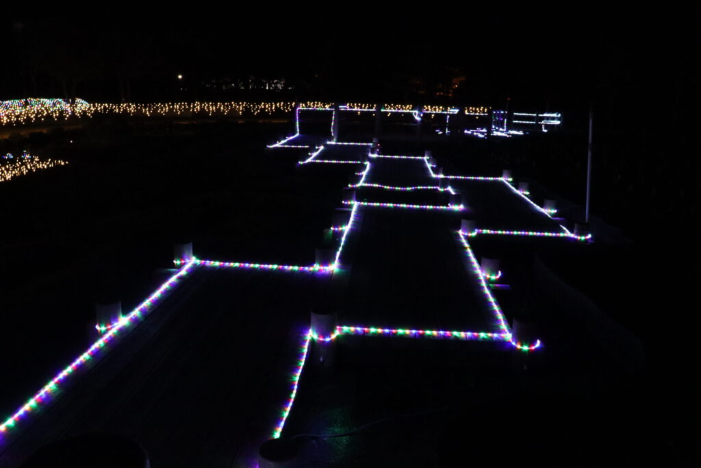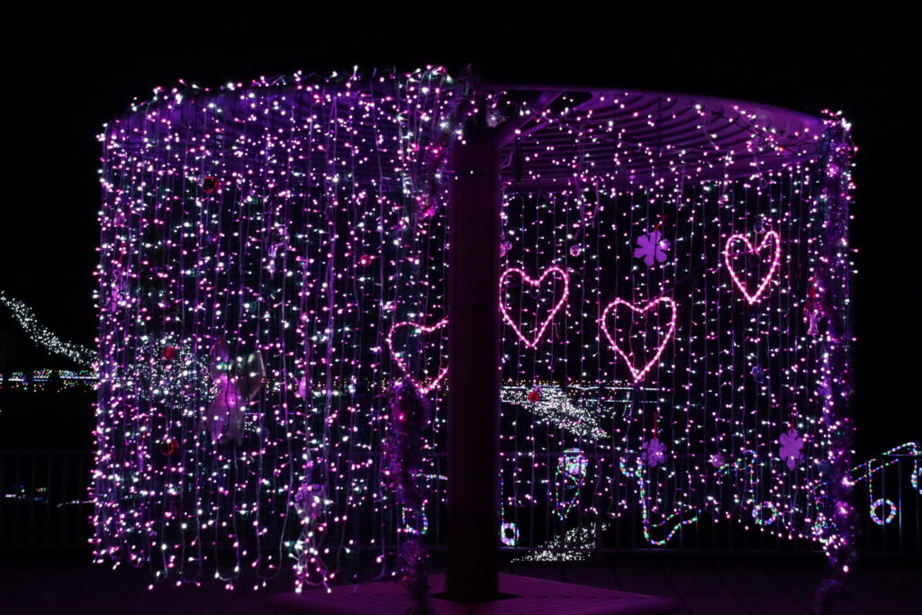手作り感はあるが、少ない電球を要所要所に配置している。池に設けられている回路を歩くと、その度に新しい光景が現れて得も言われぬ雰囲気。ツリー、ハート、フラワーと子供達が喜ぶような物ばかりであちこちから歓声が上がる。