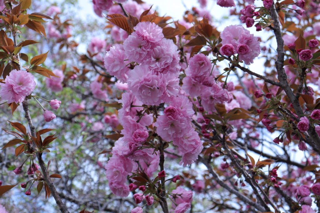 まだ咲き揃っていない感はあるが、曇り気味になって青く烟る大山をバックに青いネモフィラ。快晴もいいが曇りで薄青い背景に同色のネモフィラもなかなかいい。たっぷり時間を費やして、向かったのは桜の広場。だが、ほぼ散ってしまっていた。