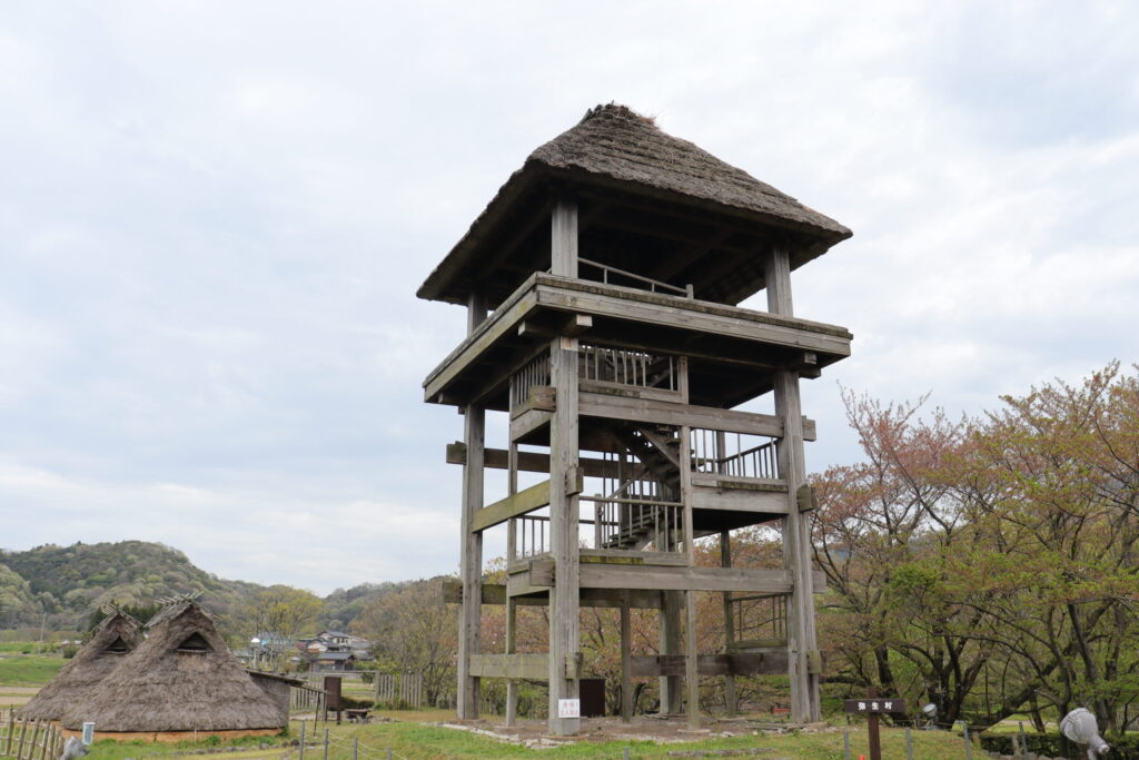 そして待望の高床建物。縄文時代とか弥生時代は学生の頃に興味が持てず年代を覚えているぐらいの知識しかない。確か地面から1・3メートルぐらいに床が設置されていたはず。しかし、この高床建物は床が3メートルで3層15メートルの物見櫓風。