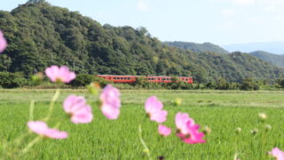 青谷〜泊、久しぶりの駅間ウオーキング!秋桜、海、夕陽の秋を満喫!