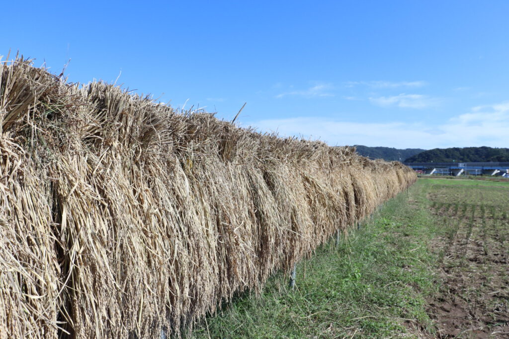 更に、青谷上寺地遺跡で児童達が稲刈りした古代米の稲架掛けが、青空の下にズラーッと並んでいるのは壮観だった。稲架掛けと秋桜を一緒に収めたかったが、近くに咲いているのは少なくて上手く撮れなかった。