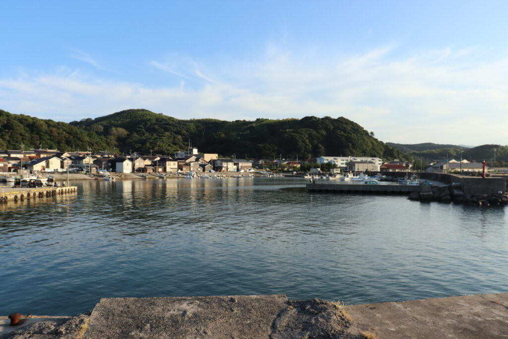 カーブを曲がって目に飛び込んできたのは、青い空と海に挟まれた緑の山をバックに並ぶミニチュアのような漁港。海の生まれではないが、どこか懐かしさを覚える光景にシャッターを切っていく。