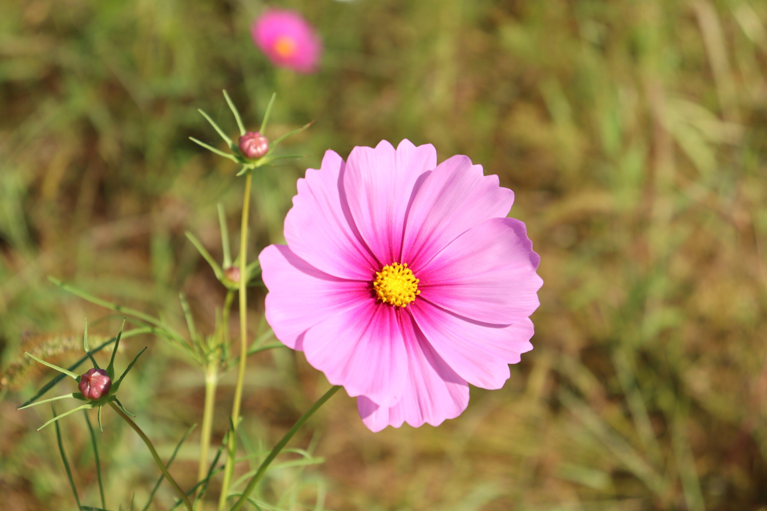 ピンクが綺麗なのは認めるが、先日まで撮っていた彼岸花の赤に比べるとインパクトには欠ける。ただ、ボカシ撮りで一輪の秋桜にピントを合わせると、一転して鮮やかなピンクが活きてくる。